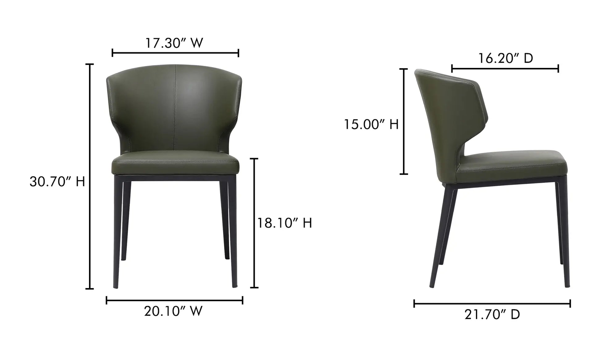 The Delaney dining chair's hourglass silhouette is full of Art Deco allure. This eye-catching accent elevates the dining experience while blending seamlessly into any interior. Dressed in easy-to-clean vegan leather upholstery with an ultra-soft foam seat, this piece adds a touch of glamour without compromising comfort.